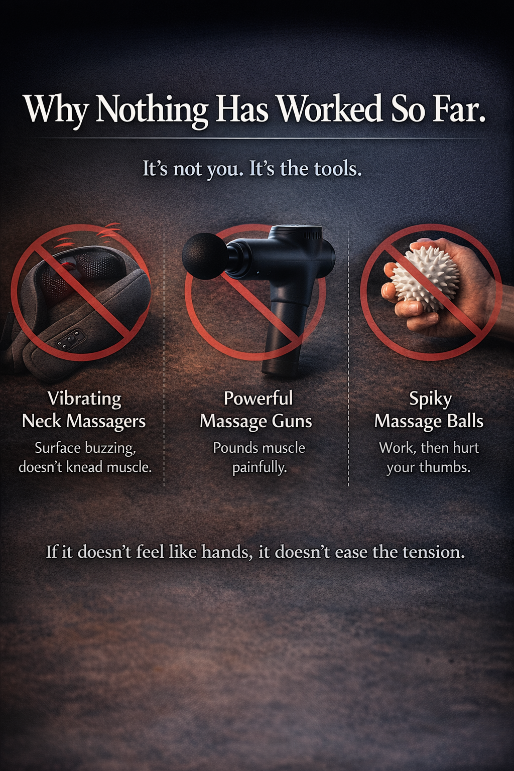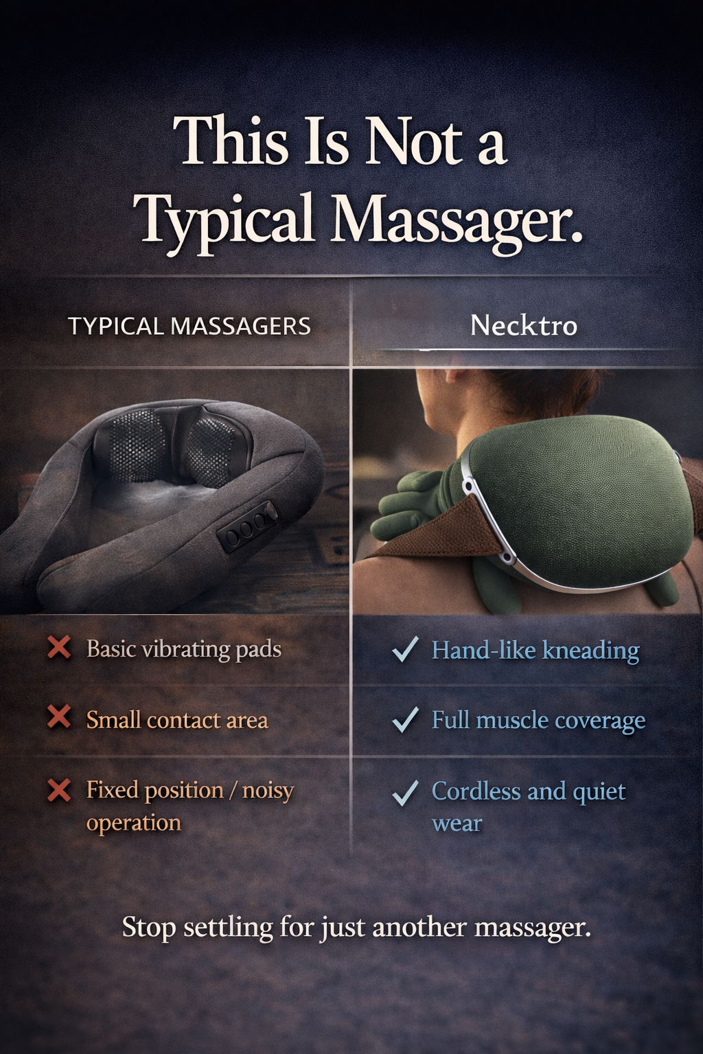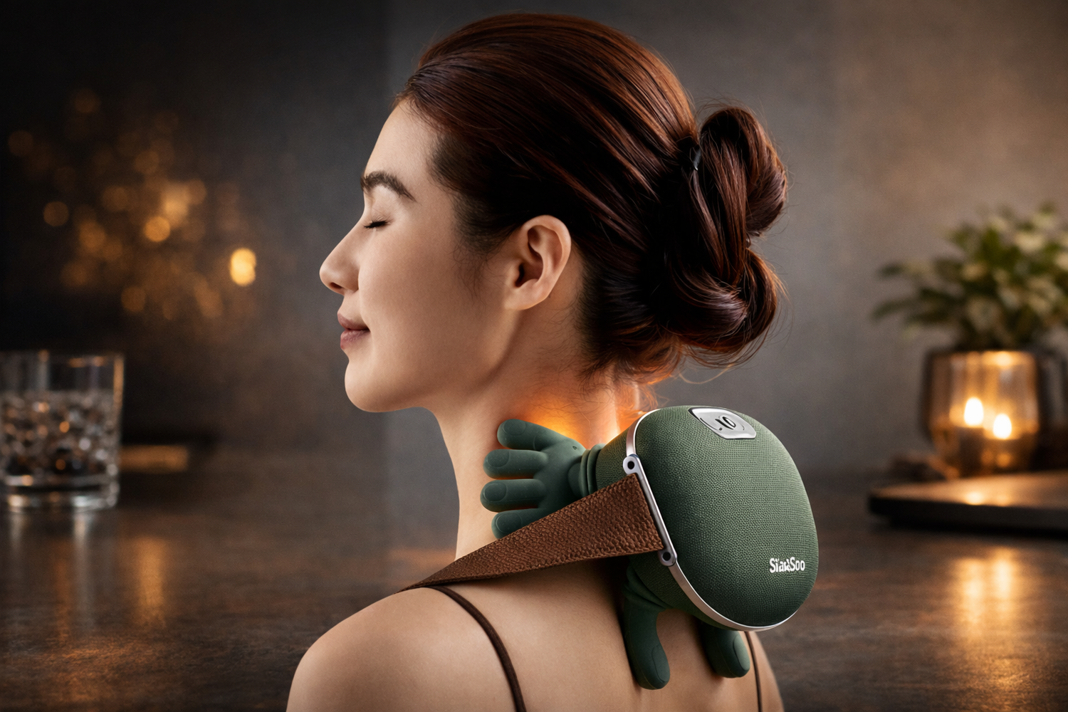 Targeted kneading and soothing heat to release tension from long hours of desk work, stress, and daily strain.